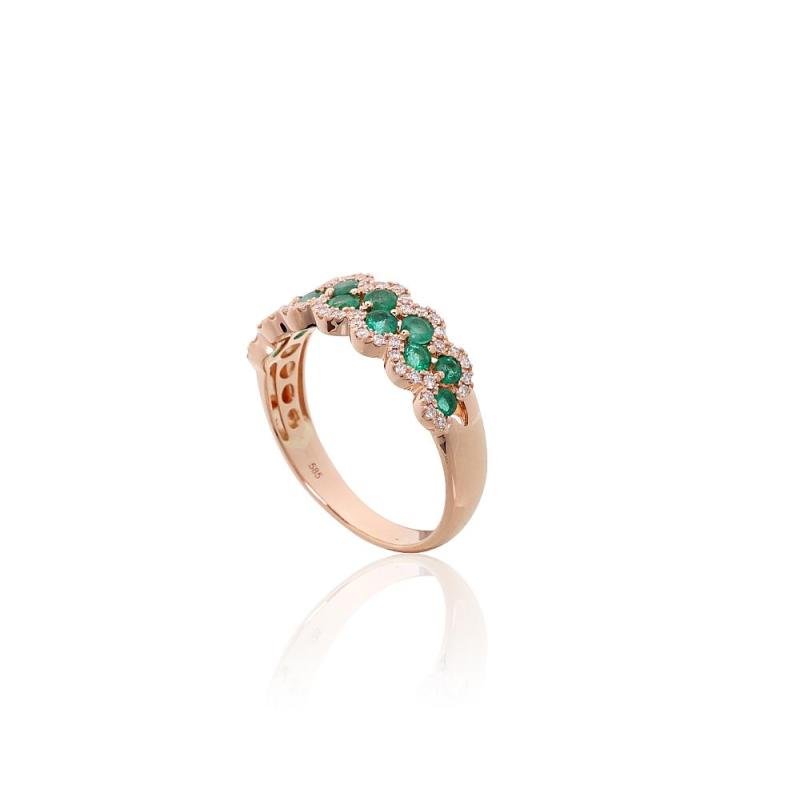 Gold ring, Red Gold 585°, Diamonds, Emerald