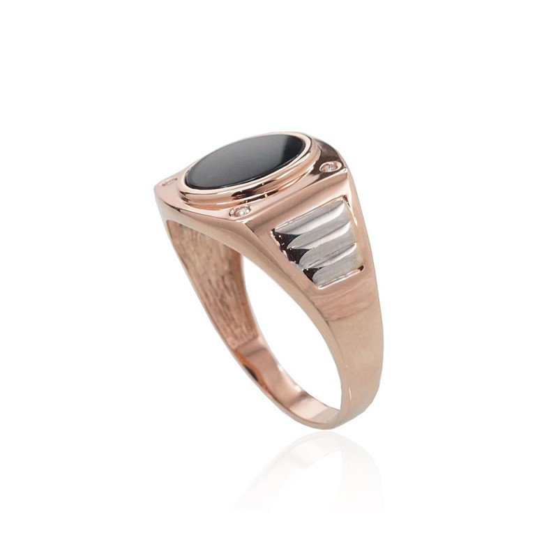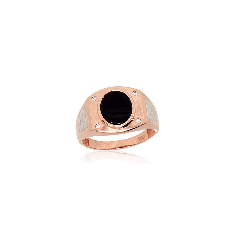 Gold ring, Red Gold 585°, Rhodium (Plating), Zirkons, Onix
