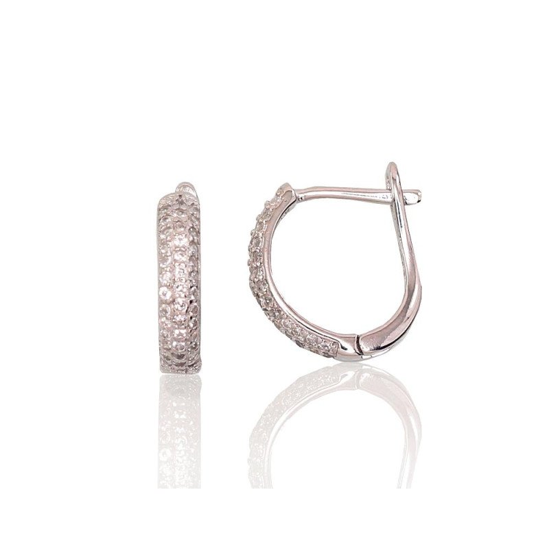 Silver earrings with 'english' lock, Silver 925°, Rhodium (Plating), Zirkons