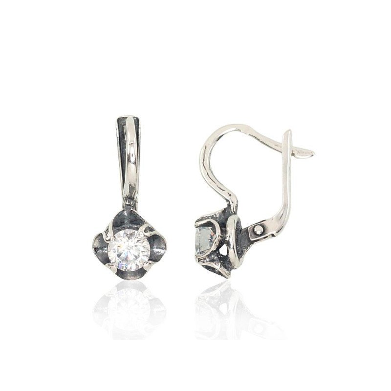 'Inglise' sulguriga hõbekõrverõngad, Hõbe 925°, oksüüd (kate), Tsirkonid