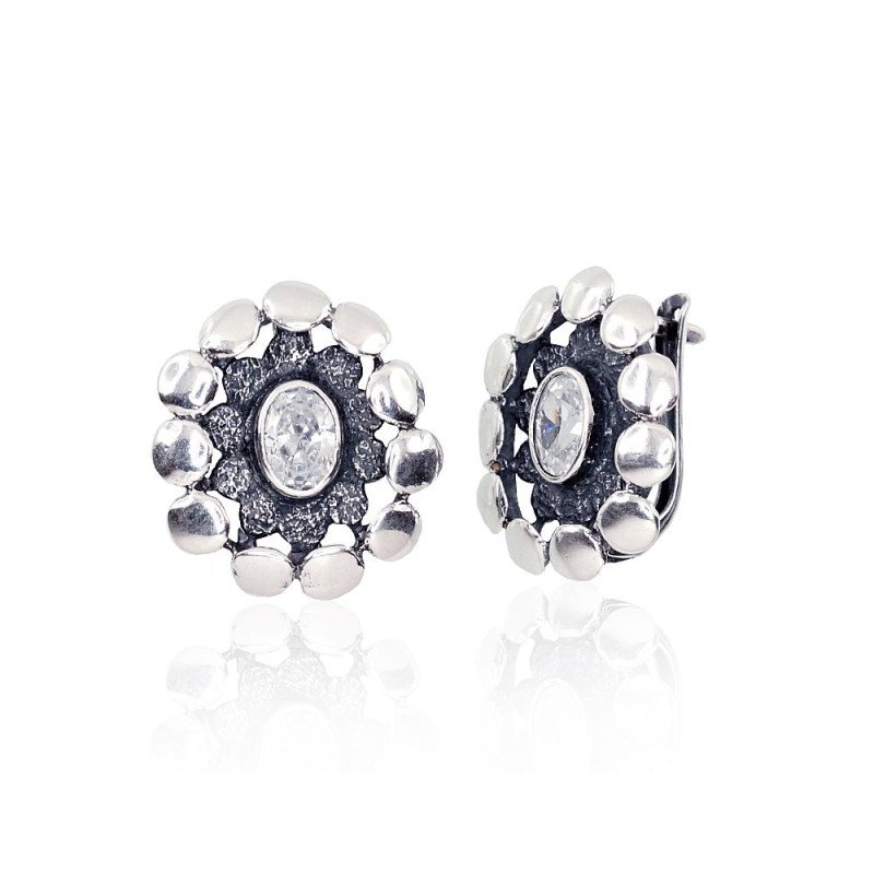 'Inglise' sulguriga hõbekõrverõngad, Hõbe 925°, oksüüd (kate), Tsirkonid