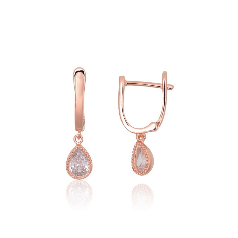 'Inglise' sulguriga hõbekõrverõngad, Hõbe 925°, punane kuld (kate), Tsirkonid