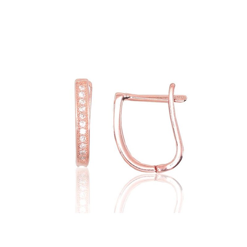 'Inglise' sulguriga hõbekõrverõngad, Hõbe 925°, punane kuld (kate), Tsirkonid