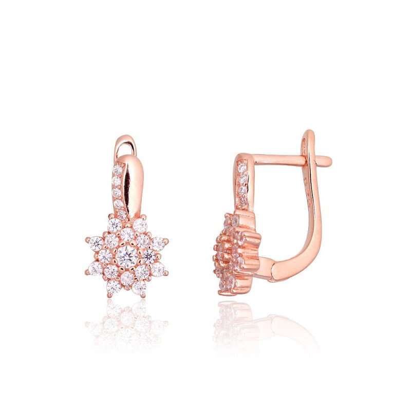 Серебряные серьги на английском замке, Серебро 925°, красное золото (покрытие), Цирконы