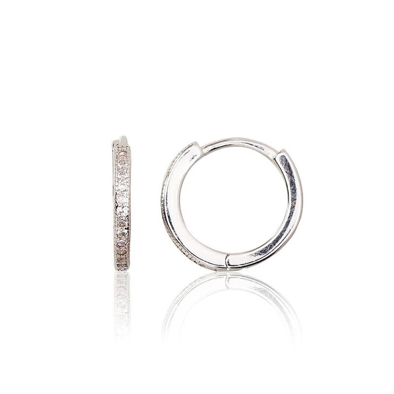 Серебряные серьги с круглой застежкой, Серебро 925°, родий (покрытие), Цирконы