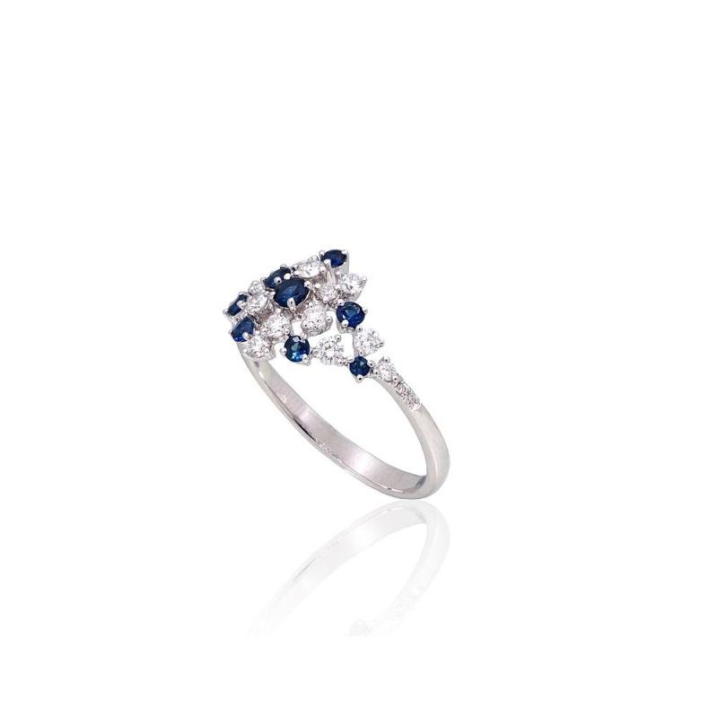 Золотое кольцо, Белое Золото 585°, Бриллианты, Сапфир